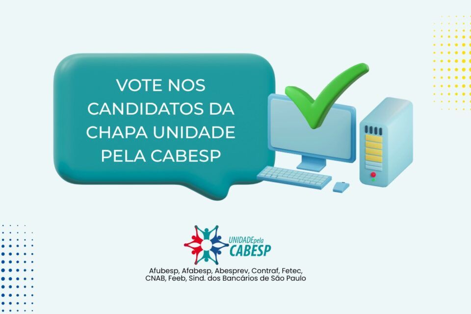 O Sindicato dos Bancários de Araraquara e região, juntamente com as associações e entidades sindicais que representam os banespianos (Afubesp, Afabesp, Abresprev, CNAB, Sinfab, demais sindicatos e federações da base da Contraf e Feeb-SP/MS), apoia os nomes da chapa Unidade pela Cabesp e reforçam que o voto mais responsável é aquele dado a candidatos comprometidos com os princípios da Cabesp que há décadas atuam na defesa dos direitos e conquistas.