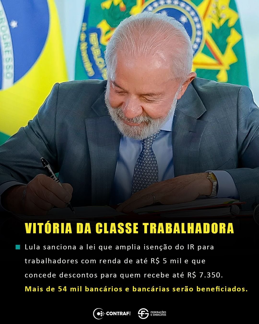 O presidente Lula oficializou a ampliação da faixa de isenção do Imposto de Renda para quem recebe até R$ 5 mil por mês e estabeleceu reduções no imposto devido para rendas de até R$ 7.350. Essa mudança representa uma vitória construída ao longo de anos de mobilização — uma pauta que sempre integrou as lutas defendidas pelo movimento sindical.